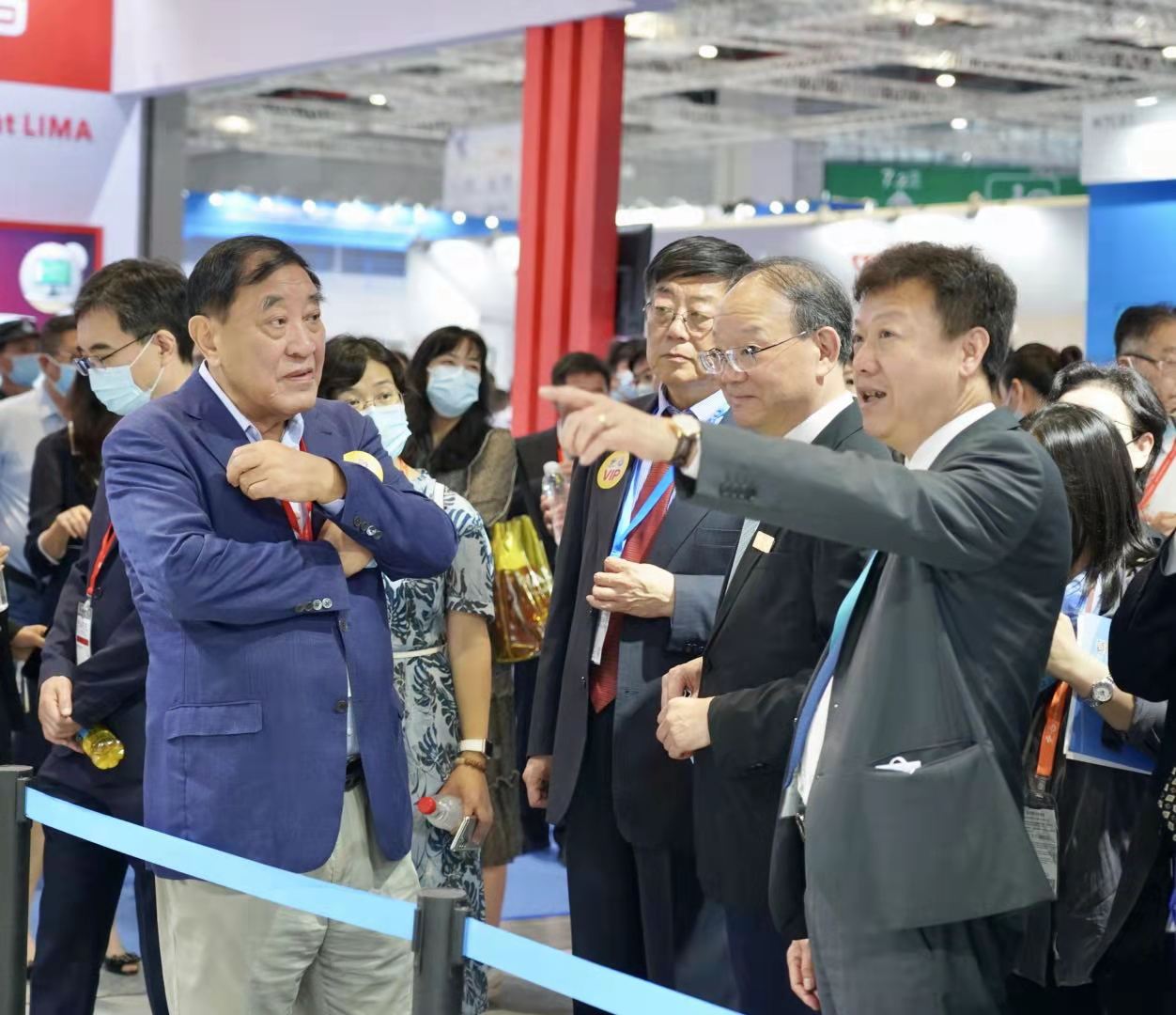 中國紡織工業(yè)聯(lián)合會黨委書記兼秘書長高勇,中國紡織工業(yè)聯(lián)合會原會長王天凱,中國紡織機械協(xié)會名譽會長王樹田,會長顧平和東華大學校長俞建勇院士等行業(yè)領(lǐng)導和嘉賓參觀了北自科技展位,常務(wù)副總經(jīng)理王勇為嘉賓介紹展品并進行深入的交流。