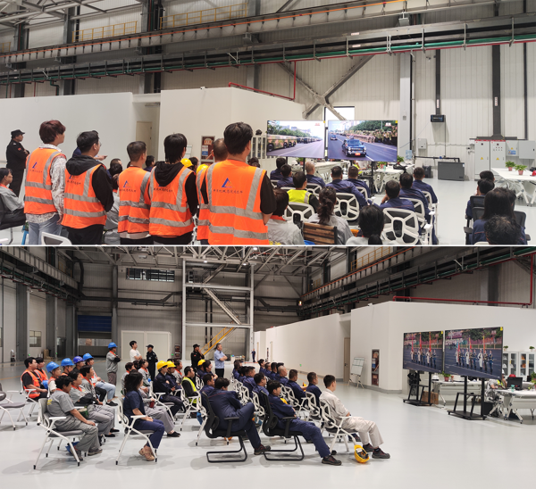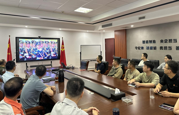 智能裝配事業(yè)部職工在項(xiàng)目現(xiàn)場收看大會(huì)直播