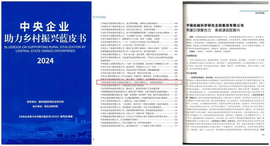 國務(wù)院國資委發(fā)布了《中央企業(yè)助力鄉(xiāng)村振興藍皮書(2024)》,集團申報的《黨建引領(lǐng)聚合力 系統(tǒng)謀劃促振興》案例成功入選了2024年中央企業(yè)助力鄉(xiāng)村振興典型案例。
